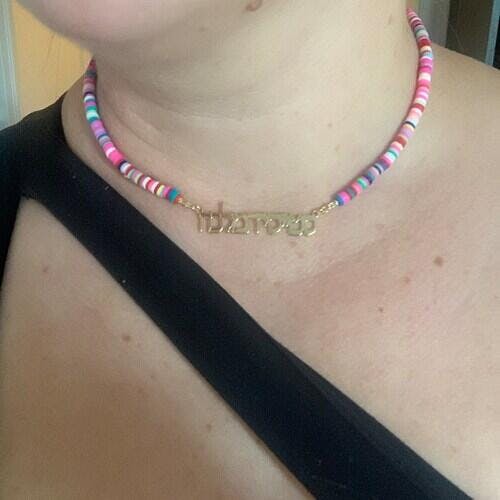 Natalie Like other reviewers have said, this is such a fun and playful necklace. Shipping was surprisingly fast and customer service was great. Might need to buy another one as a gift! 🩷