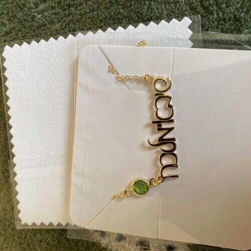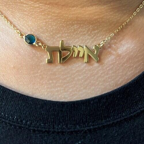 Hebrew Name Necklace with Birthstone